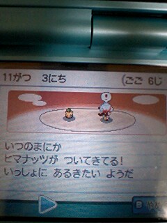 ポケモンをいれずにポケウォーカーを持って歩いてたら、ヒマナッツが後ろから付いてきました!
