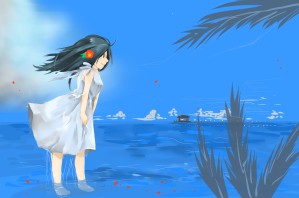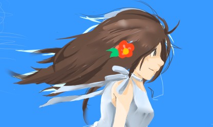 黒髪に赤い花飾りは結構いいコントラストだからやってみたいんだけど、青空+黒髪ってどうよ?とも思う。