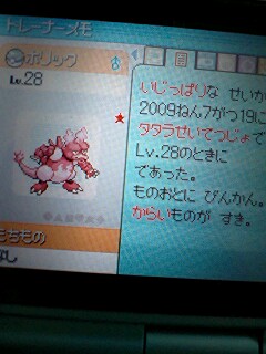 で、これからダークライを粘る前に、何か捕まえておきたいなーと、タタラ製鉄所の前でポケトレしてたら41連鎖目で出てきました。